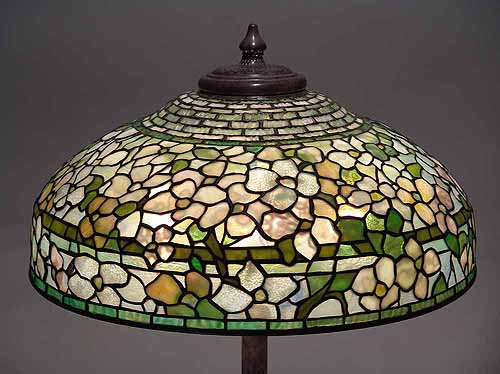 22" White Dogwood Leaded Glass and Bronze Tiffany floor Lamp # 1504