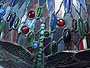 22" Dragonfly Tiffany lamp shade scarab blue #1507 & Bronze Junior  Pinao floor base #377