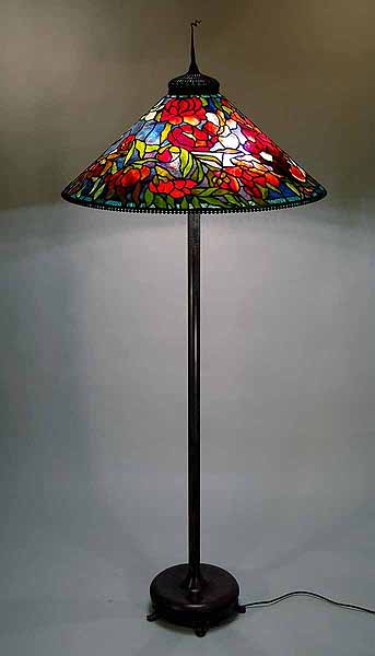29" Peony leaded glass and bronze Tiffany lamp #603 on Piano Junior Floor base #387