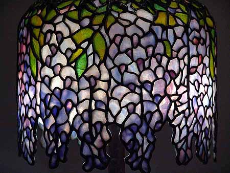 10" Blue and Pink Wisteria Leaded Glass and Bronze Tiffany Lam p #349