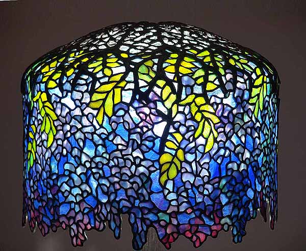 18" BLUE/ PINK WISTERIA leaded glass and bronze Tiffany lamp #342