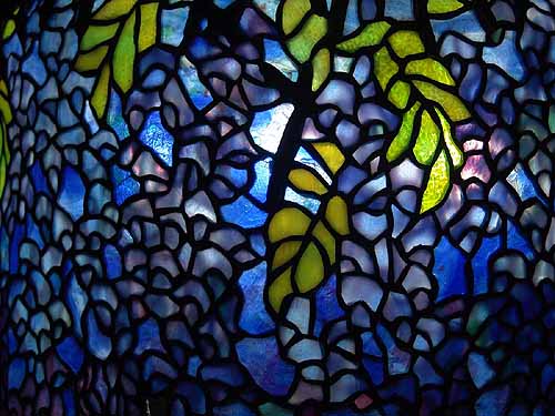 18" BLUE/ PINK WISTERIA leaded glass and bronze Tiffany lamp #342