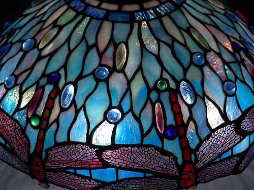 18" Hanging head Dragonfly leaded glass Tiffany lamp