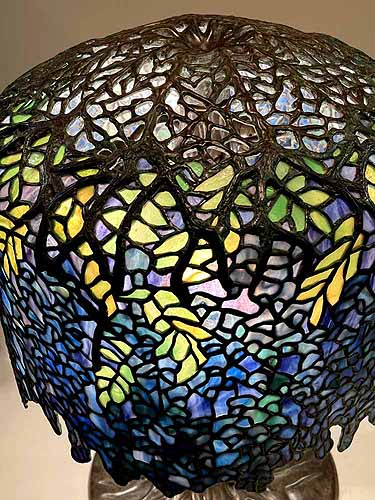 18" Blue Wisteria leaded glass and bronze Tiffany lamp #342
