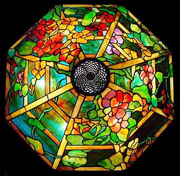 25" NASTURTIUM TRELLIS #607 Leaded glass and bronze Tiffany octagonal lamp shade