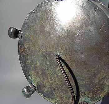 The suface of the lamp base and sockets are patinated with brown /dark green- brown Tiffany patina made in our Studio using the original recipe handed down by Tiffany Studios New York. No lacquer is used in the patination process.