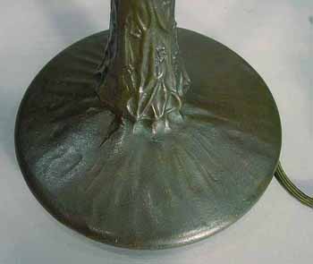 The suface of the lamp base and sockets are patinated with brown /dark green- brown Tiffany patina made in our Studio using the original recipe handed down by Tiffany Studios New York. No lacquer is used in the patination process.