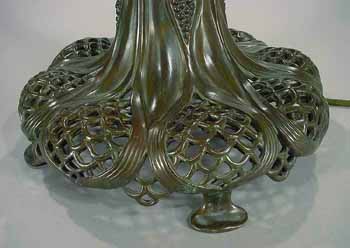 This base is wired according to German safety standards. Original US Lamp Sockets are available at no extra cost. The suface of the lamp base and sockets are patinated with brown /dark green- brown Tiffany patina made in our Studio using the original recipe handed down by Tiffany Studios New York. No lacquer is used in the patination process.