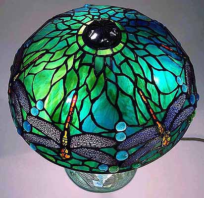 14" Dragonfly Tiffany Lamp #1585 on Glass Mosaic bronze base #356
