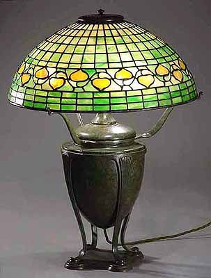 16" Acorn leaded Glass Tiffany lamp shade and Greek Urn Bronze lamp base