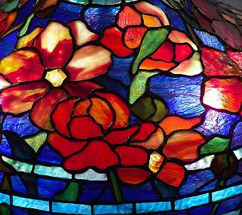 18" Peony Tiffany Lamp shade #1475 on Twisted Vine bronze casted lamp base #445