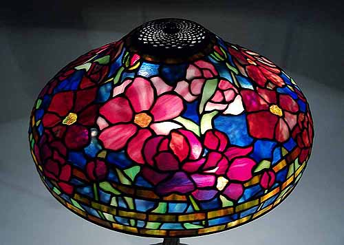 Two 18" Peony Tiffany Lamps #1475 on Twisted Vine bronze cast lamp bases #445